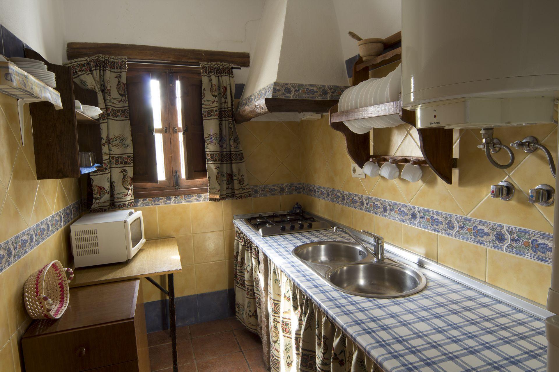 - Cocina: totalmente equipada, menaje, microondas, tostadora, batidora, frigorífico, cafetera... Estropajo y balletas a estrenar, paños de cocina.